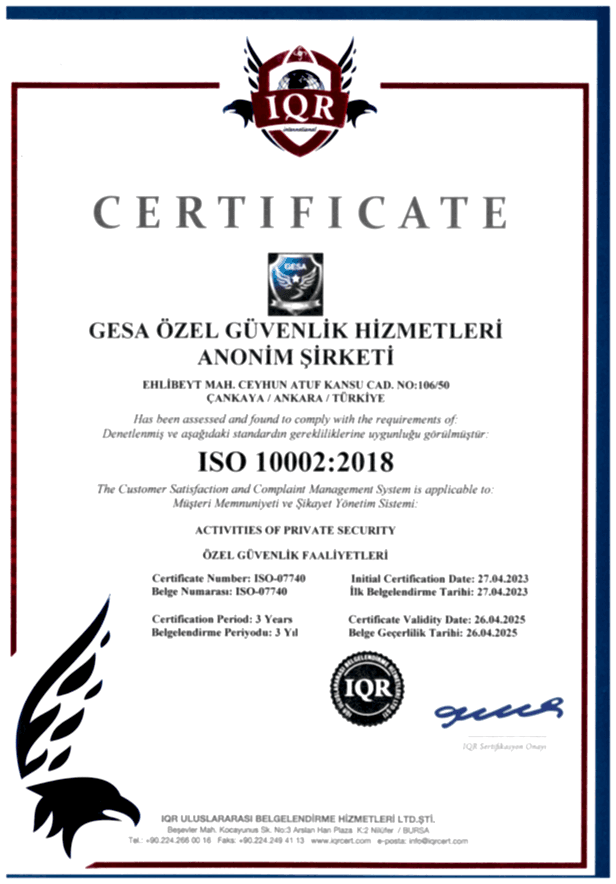 Hizmet kalitemizi belgeleyen ulusal ve uluslararası sertifikalarla çalışmalarımızı daha güvenilir ve sürdürülebilir bir zemine taşıyoruz.